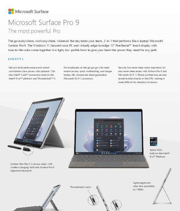 The Surface Pro 9 is the most powerful Pro model yet, engineered to go anywhere the workday takes you. Review this spec sheet to get a look…