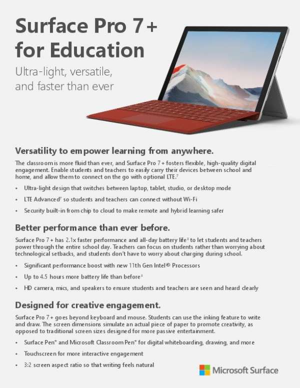 With the Surface Pro 7+ for education, you can empower learning from anywhere. Review this flyer to discover powerful performance, extended…