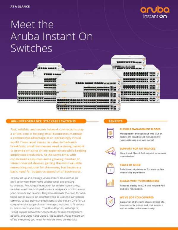 This solution brief highlights the benefits of Aruba Instant On switches, describes how easy it is to manage them, and lists their…