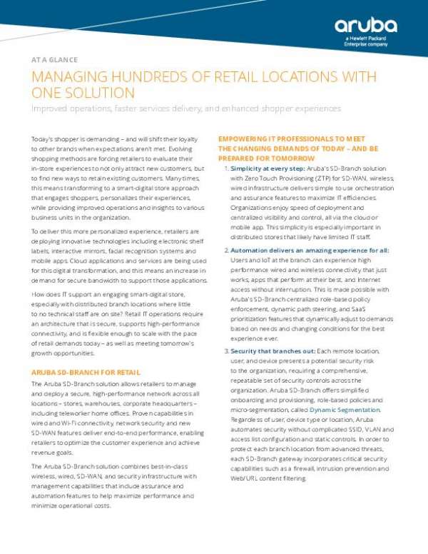 This at-a-glance document discusses the key features and benefits of the Aruba SD-Branch solution, which provides simplicity, automation,…