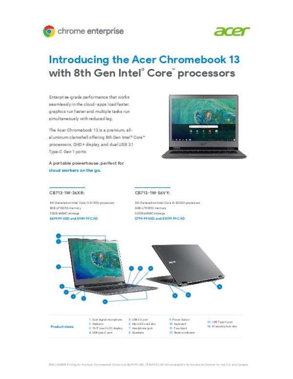Post the datasheet, "Introducing the Acer Chromebook 13"