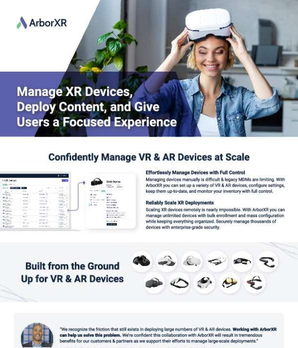 Scaling XR technology requires robust tools that simplify device management and content deployment. This solution brief details how ArborXR…