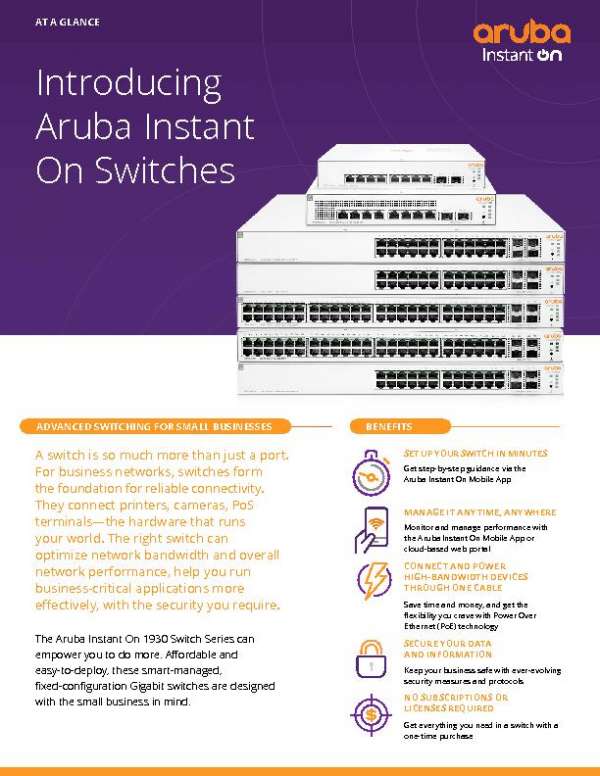 This at-a-glance document explains the benefits of the Aruba Instant On 1930 Switch Series and provides an overview of their technical…