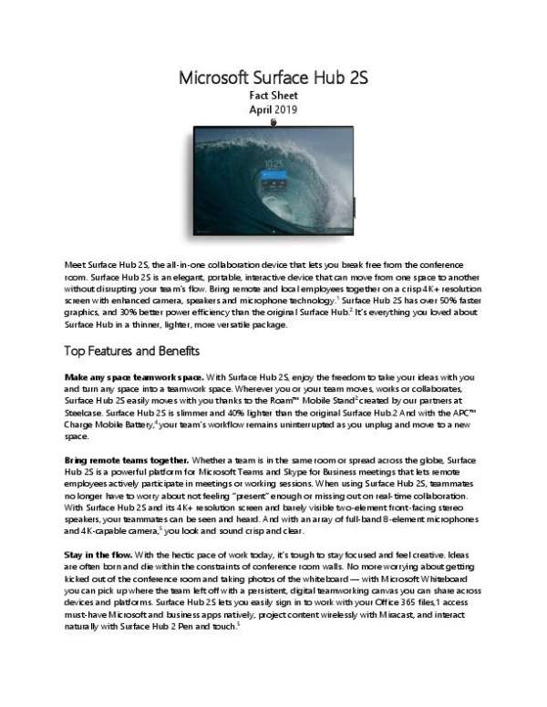 Microsoft Surface Hub 2S Fact Sheet