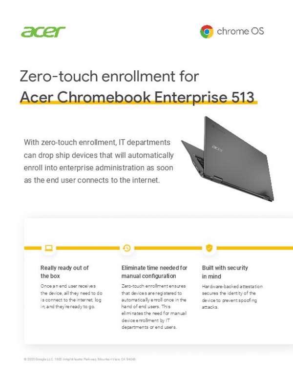 Zero-touch enrollment for Acer Chromebook Enterprise 513