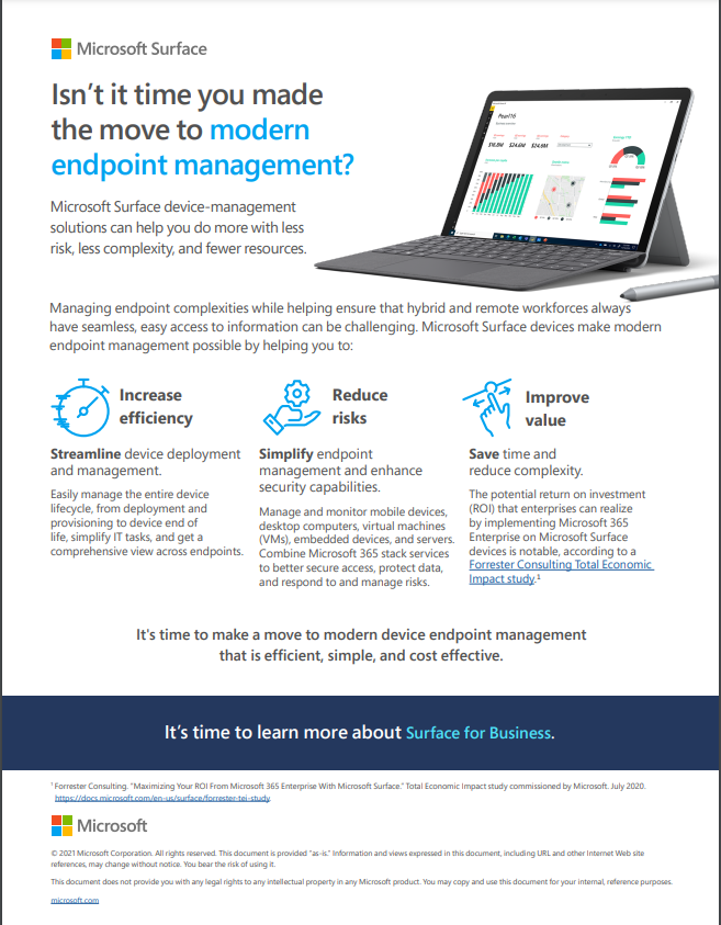 Microsoft Surface devices are equipped with device management solutions that are designed to help you reduce risk, IT complexity, and…