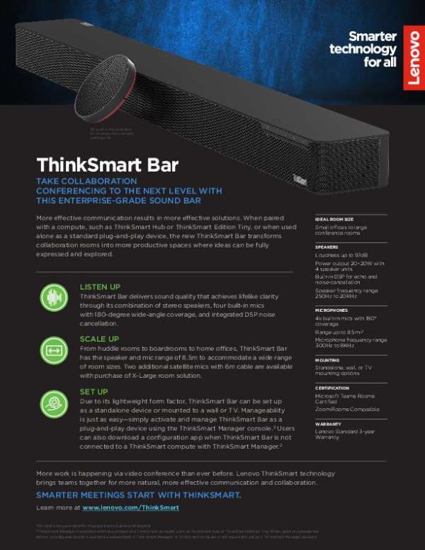 Take Collaboration Conferencing to the Next Level with Lenovo ThinkSmart Bar