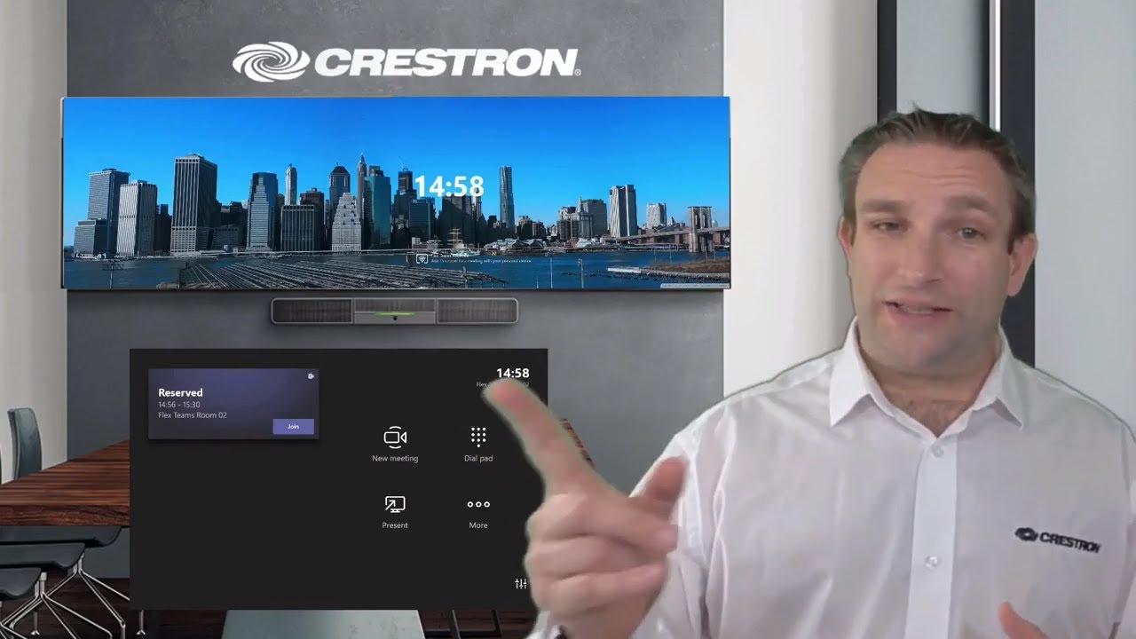 Microsoft MVP award winner, Graham Walsh, demonstrates how the Crestron TSS scheduling panel for Microsoft Teams and Crestron Flex for…