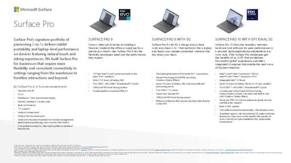 This datasheet shows the various models available in the Surface Pro Family, including the Surface Pro 9, Surface Pro 9 with 5G, and…