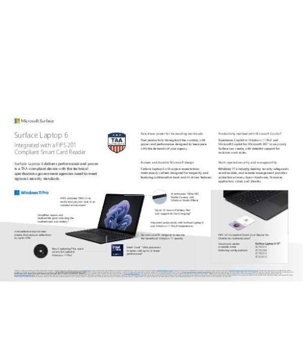 Discover the latest TAA-compliant Surface Laptop 6 in this datasheet. It offers power and design in an AI PC. View: TAA Surface Laptop 6